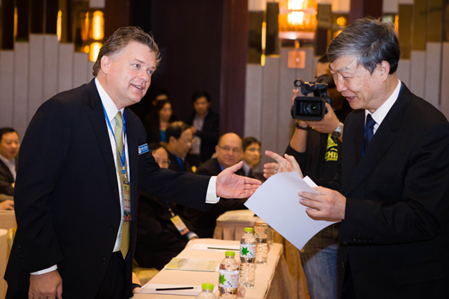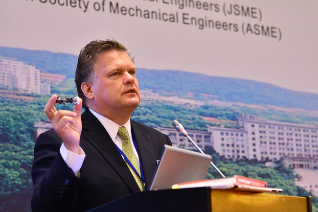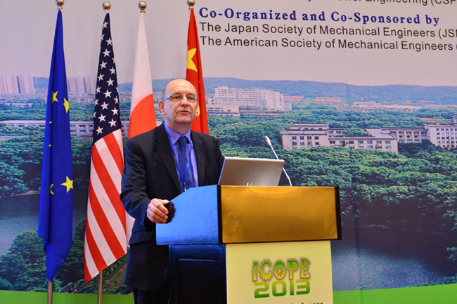 日本信州大学教授Yasuo Koizumi代表日本方面作了“日本机械工程师学会研究委员会对于日本大地震的紧急调查和未来对策的建议的简介”的报告。本次大会副主席、美国康科系统公司(Conco Systems, Inc., USA)George Saxon先生代表美方以“能源工程师塑造未来”为题作了报告;巴黎矿业大学教授、中欧清洁与可再生能源学院项目协调人Didier Mayer教授代表欧方介绍了“基于风能研发线路的全球可再生能源现况”;最后由澳大利亚科廷科技大学Li Chun-Zhu教授以“用于绿色发电设备的生物质热解与气化”为题做学术报告。五位教授的报告均受到了与会代表的热烈欢迎。