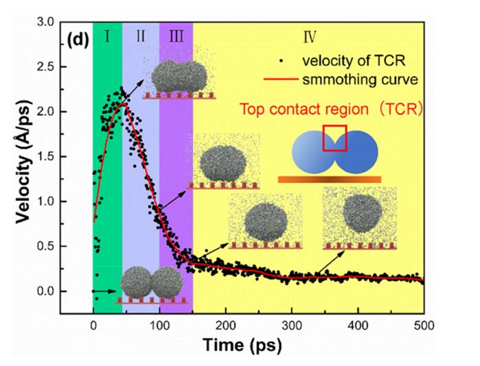 图1 纳米液滴合并后发生自弹跳行为的分子动力学模拟