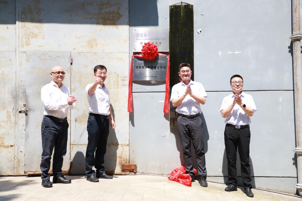 启动仪式上,蔡未末、成晓北共同为“低碳发动机联合实验室”揭牌。