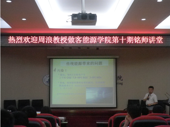 为加强校际交流合作,增进了解。应能源学院邀请,南昌大学材料科学与工程学院院长兼太阳能光伏学院院长、“材料物理与化学”国家重点学科负责人、 江西省高校光伏工程技术研究中心主任周浪教授,特来我校交流。并于6月17日早上在动力楼402会议室,就太阳能光伏技术为本院硕博研究生做了一场别开生动的讲座。