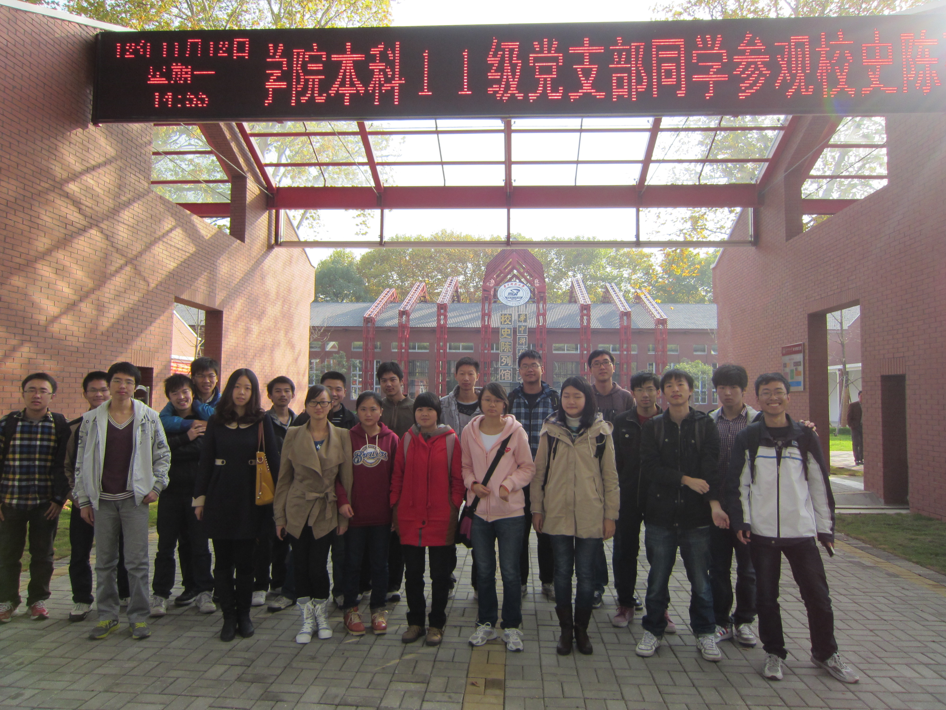 2012年11月12日,能源本科11级党支部组织全体党员参观了校史陈列馆,部分入党积极分子也积极参与。本次活动旨在让各位党员同志能够更好的了解我们学校的发展历史。