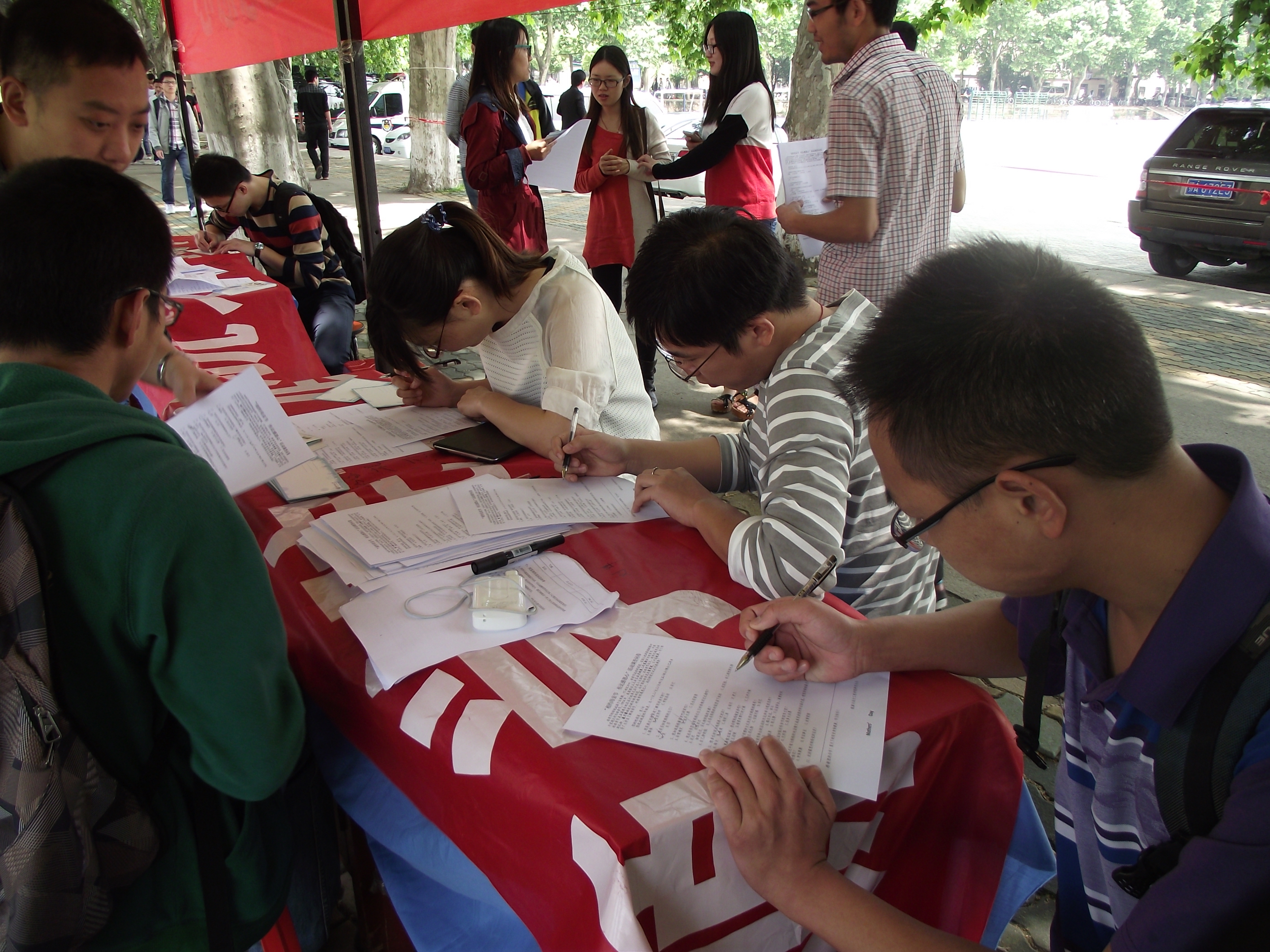 在当天午饭前后,路演活动达到了高潮,路过的同学纷纷驻足,在友善的听完工作人员的介绍后拿起笔认真填写起问卷,或者接过明信片写上对妈妈的祝福,宣传部的工作人员也临时客串记者,对几位同学进行了录像采访。
