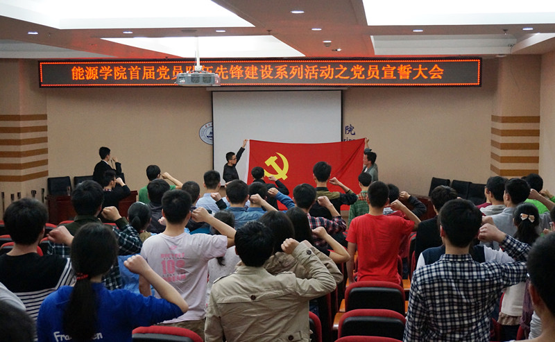 2015年3月31日晚上7点,能源学院首届党员队伍先锋建设系列活动之预备党员宣誓大会在动力楼402会议室隆重举行。列席本次会议的有能源学院党总支副书记冯晓东老师、能源学院党建辅导员李智老师和本科13级辅导员蔡颋老师,以及全院研究生和本科生的61位预备党员。