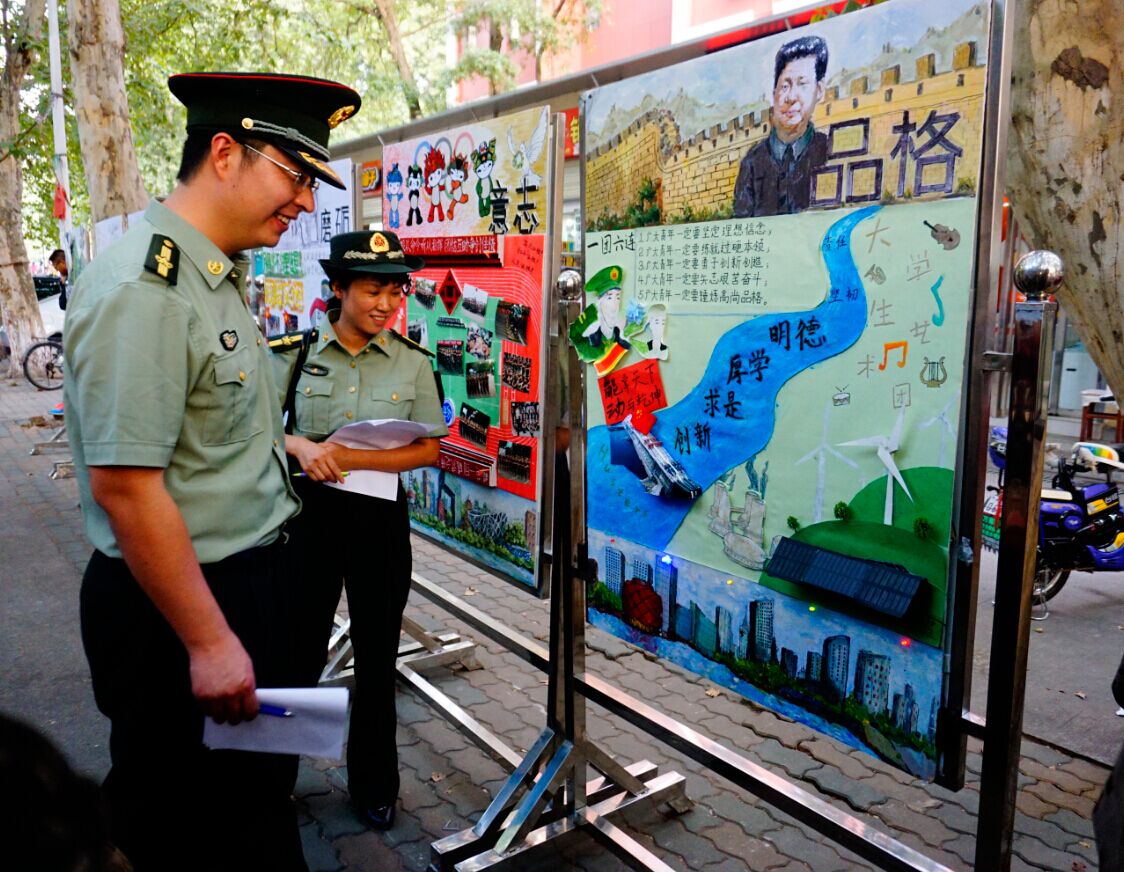 据悉,军训一团,总共六个连,分别以“继承”、“抗战”、“精神”、“磨砺”、“意志”、“品格”的关键词为主题,设计制作了系列展板,完整的诠释了继承抗战精神,磨砺意志品格的主题,号召同学们为实现中华民族的伟大复兴而努力奋斗。