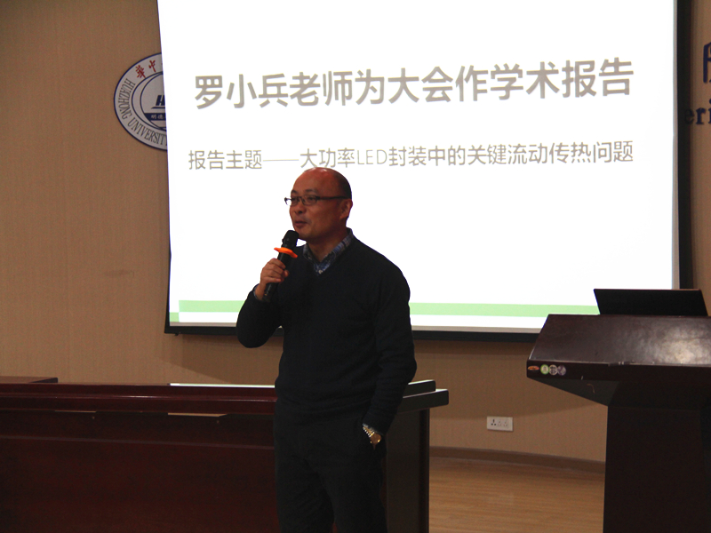 冯晓东书记为本次学术年会致开幕词,预祝本次年会成功举办。接下来,罗小兵教授为本次学术年会作了时长90分钟的主题报告,主题为大功率LED封装中的关键流动传热问题,报告丰富详实,同时他还就学生培养表达了自己独到的观点,劝大家珍惜在校时间,专注科研。
