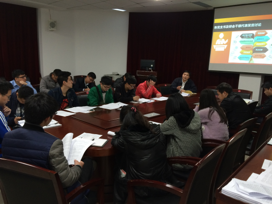 随后,与会人员结合下发的2016两会政府工作报告全文观看了两段相关短视频,第一段视频是关于政府2015年在基础设施建设、扶贫以及简政放权等方面所取得的瞩目成绩,第二段视频解读了今年两会的十个关键词,分别是:经济增长预期6.5%—7%、供给侧结构性改革、新经济、扶贫攻坚、政府自身建设、反腐倡廉、重拳治污、新型城镇化、民生改善、对外开放。观看完视频后是自由讨论环节,在主持人的邀请下,硕士1504班党支书陈雨同志分享了他们支部组织生活会学习“两会”精神的心得,他认为学习会议的形式及主题讨论应该更多的贴合同学们的生活,使他们体会到“两会”与我们息息相关;硕士1507班党支书罗莉莉同志、研究生会主席吕振亚同志均对环境污染问题发表了自己的看法,他们认为我国环境污染严重,政府需要继续下大力气治理,党总支副书记冯晓东老师与与会同志分享了自己关于环境问题的看法,他认为我国步入工业化时间比发达国家晚,近年来经济快速发展,像发达国家所经历过的环境污染时期一样难以避免的会带来环境污染程度的加深,另外,国民的环保意识还需提高,存在一些不法分子违规排放的现象,但是近年来政府出台了各项重拳治污的措施,排放标准越来越高,监管体系越来越完善,环境问题也在一步步改善。