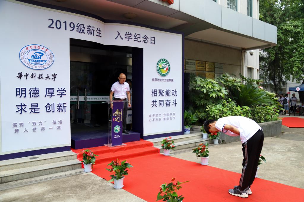 上午8时,入学纪念日仪式正式开始。伴随着庄重的音乐,yl23411永利集团295名本科2019级新生依次踏上红毯,向老师致敬。院长罗小兵教授对每位本科新生提出期望,一起签下“奋斗的约定”,并向新生颁发入学纪念礼。每一位新生还在“奋斗的约定”纪念墙上签下自己的名字,并同家长、老师、同学合影,记录这一特殊时刻。在仪式进行中,罗小兵还特意为三名当天生日的新生分别送上生日祝福,让同学们在这个特殊的日子里,感受到能源学院集体的温暖。