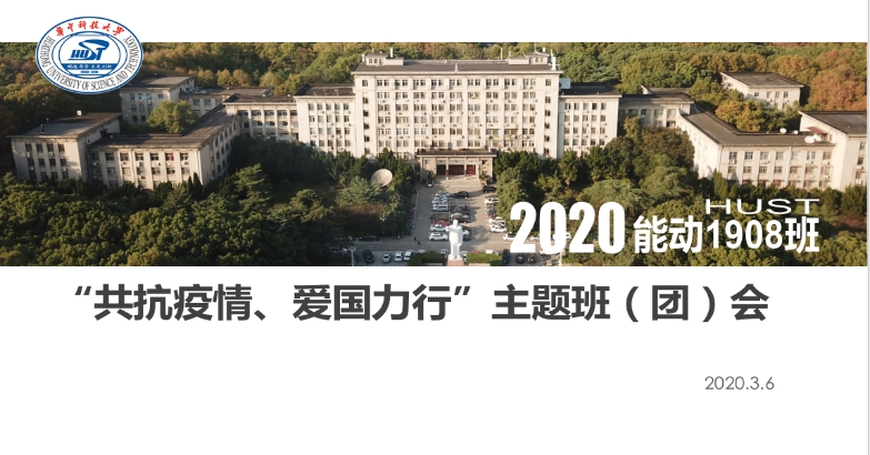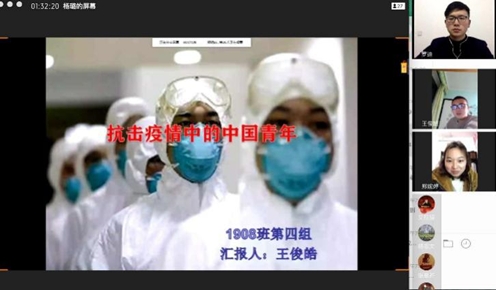疫情发生以来,中国道路和中国制度令人自豪,无数抗疫故事温暖人心。各班级以各种形式进行专题分享,讲述一个个有力量、有温度的故事。能动1908班同学以“翻转团课”的形式分组讲述抗疫中的中国故事,分享所见所闻和所思所想,孙豪嘉等五位同学采用在线朗诵的形式,向逆行者致敬,为中国加油,为武汉加油。能卓1901班同学以寄语留言的形式,向祖国表达心声,传递青年力量。