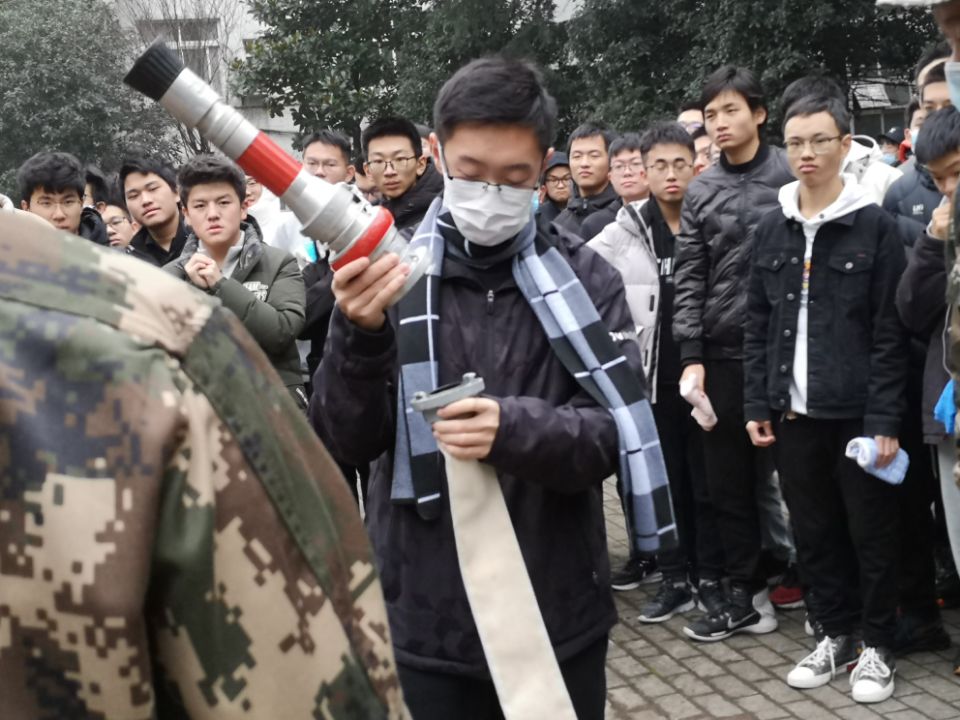 随后,同学们在紫菘广场上进行灭火器材实操培训,消防人员详细讲解并现场演示灭火器和消防栓水管的使用办法。在消防人员的带领下,各班学生代表学习并操作了灭火器和消防栓水管。