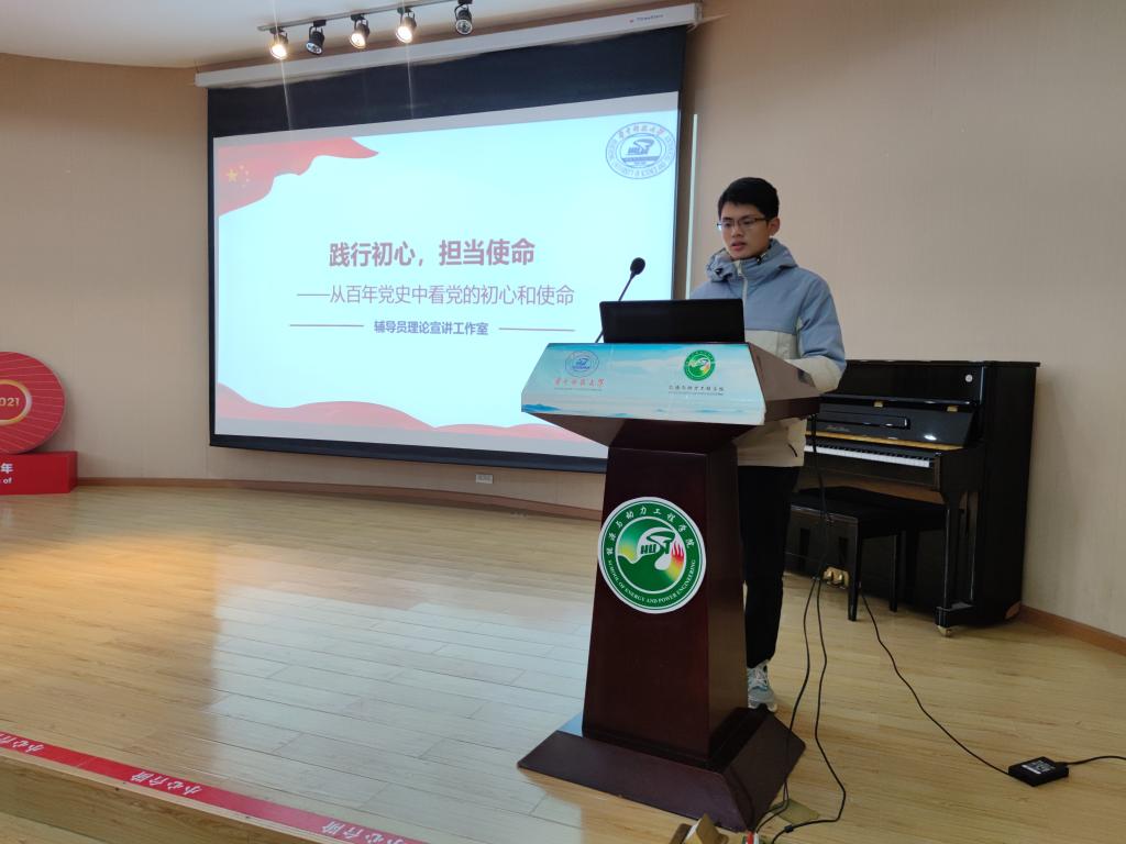 王泽昀老师以“践行初心,担当使命”为主题进行宣讲,引导同学们共同学习领会中国共产党人的初心和使命是什么,带领同学们从百年党史中去理解党的“初心”和“使命”,强调新时代的青年应将实现中华民族伟大复兴的中国梦作为同学们的初心和使命,