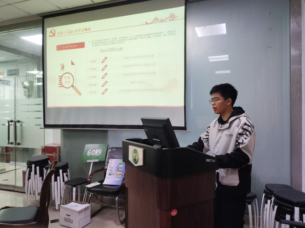 为推进党史学习教育走深走实,深入学习贯彻党的十九届六中全会精神,促进支部党员树立中国民主自信,12月22日晚,能源学院本科2019级党支部第三党小组于动力楼学工组玻璃房组织开展了“学六中全会精神,走中国民主道路”十二月主题党日。党小组全体党员同志参与党日活动,杨文泉同志主持会议。