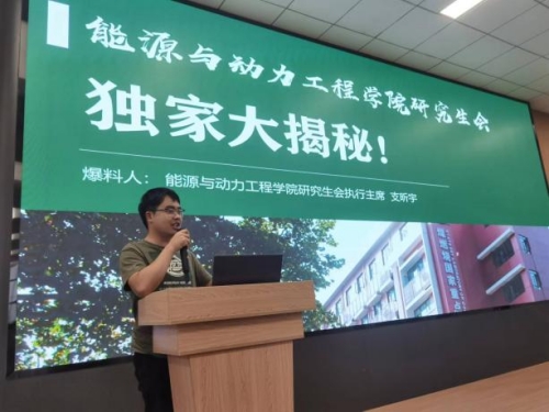 会议末,能源学院研究生会主席团执行主席支昕宇与21级德育助理代表李威分别对能源研会和德育助理进行迎新宣讲。在过去的一年里,能源研会与德育助理均取得了优异成绩,两位代表祝愿各位新生能够进行一次又一次的“喻见”,用多彩的笔墨点缀研究生的缤纷生活。
