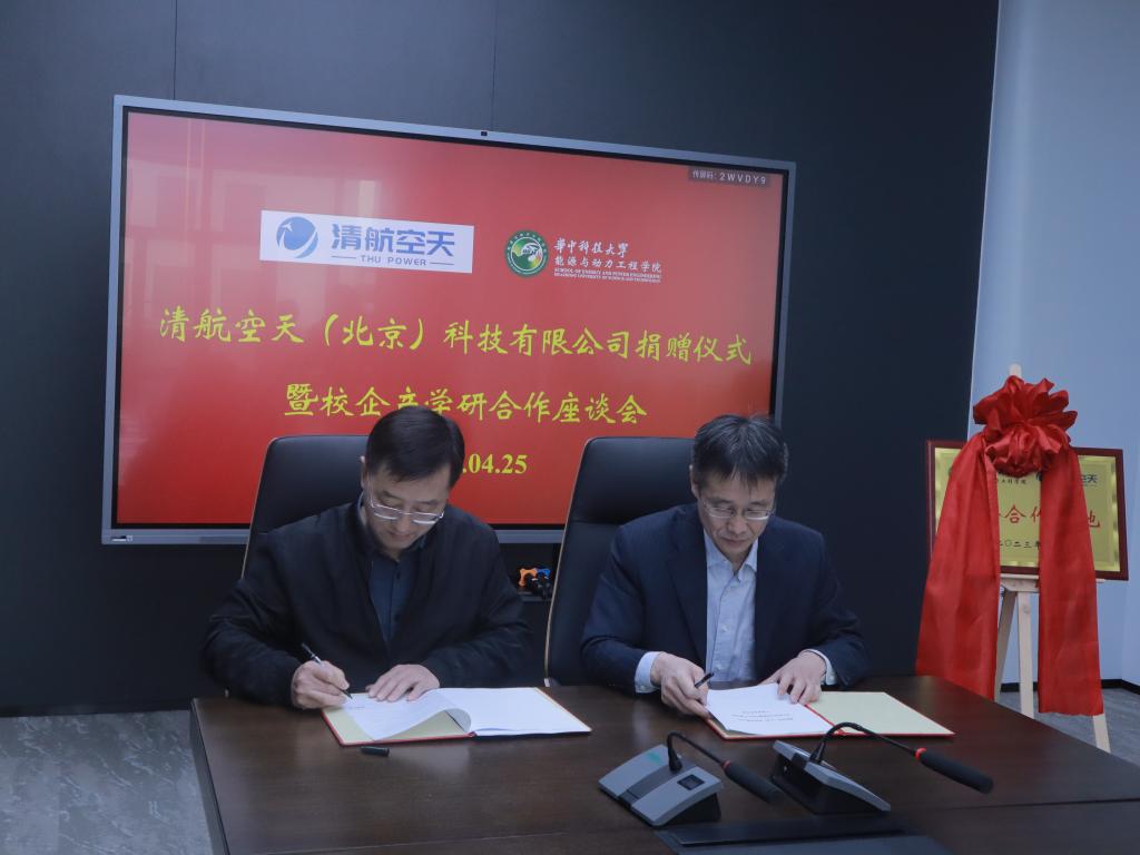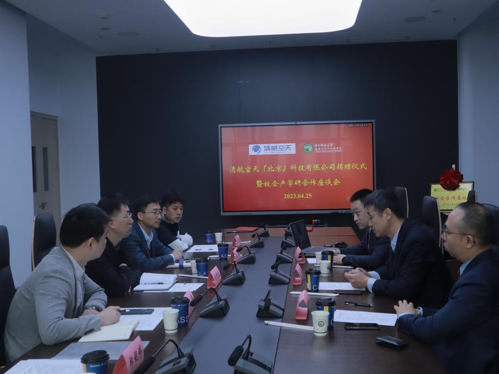 4月25日上午,清航空天(北京)科技有限公司捐赠仪式暨校企产学研合作座谈会在清洁能源大楼N209会议室举行,清航空天(北京)科技有限公司总经理陈斌,副总经理肖震,国际及校企合作负责人王纪琨,华中科技大学能源学院副院长成晓北教授,党委副书记孙禄老师,院长助理、学工组组长孙伟老师,实验中心朱赤老师,辅导员郑妮婷老师出席活动。