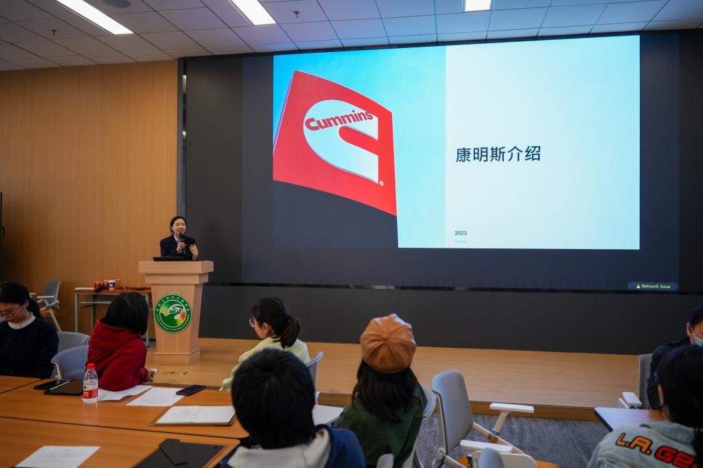 分享会最后,康明斯人力资源负责人汪俊从企业的创办及发展历史、在华业务及现状、面向市场和产品等方面对康明斯公司雇主品牌和产品进行了介绍,让同学们对康明斯公司有了更深的了解。