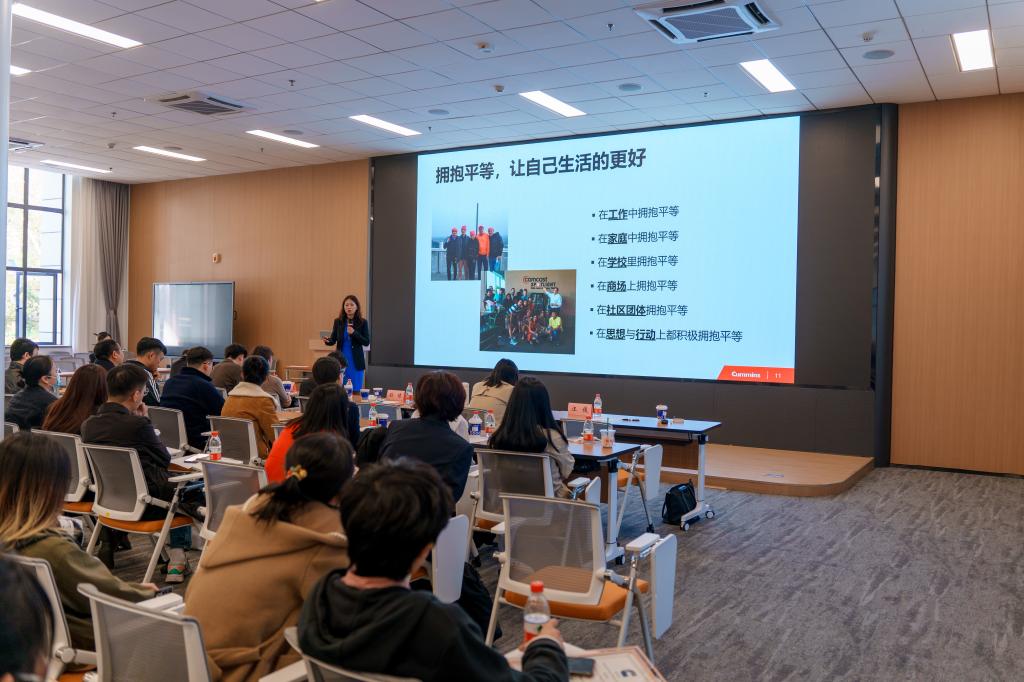 接下来,康明斯软件与电子中国区总经理郭燕以“拥抱平等”为题作职业生涯讲座,讲述了她作为职场女性不断成长的心路历程,鼓励在座的同事与同学们不要被社会上的各种标签所“定义”,要自信、勇敢以及主动地寻求社会价值。在自由问答环节中,在场同学踊跃提问交流,郭燕总经理以本人亲身经历为例,生动地回答了同学们提出的问题,也让在座的同学们对未来的道路有了更加清晰的认知,更加坚定了自己的理想。