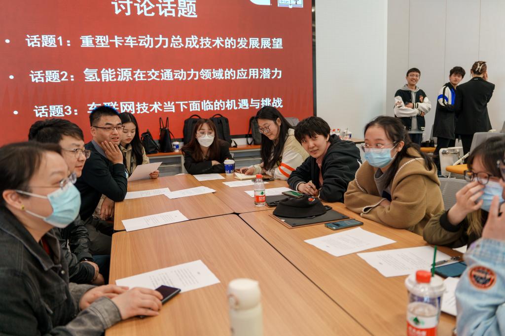 下一环节中,进行了圆桌小组讨论。在场嘉宾以及同学们共分为三组,分别对“重型卡车动力总成技术的发展展望”、“氢能源在交通动力领域的应用潜力”、“车联网技术当下面临的机遇与挑战”三个话题展开了充分而热烈的讨论,并由各小组派出代表对讨论结果进行总结展示,大家还表示这次活动不仅拓宽了自己的知识面与视野,也让自己对相关行业发展有了更丰富的认知。