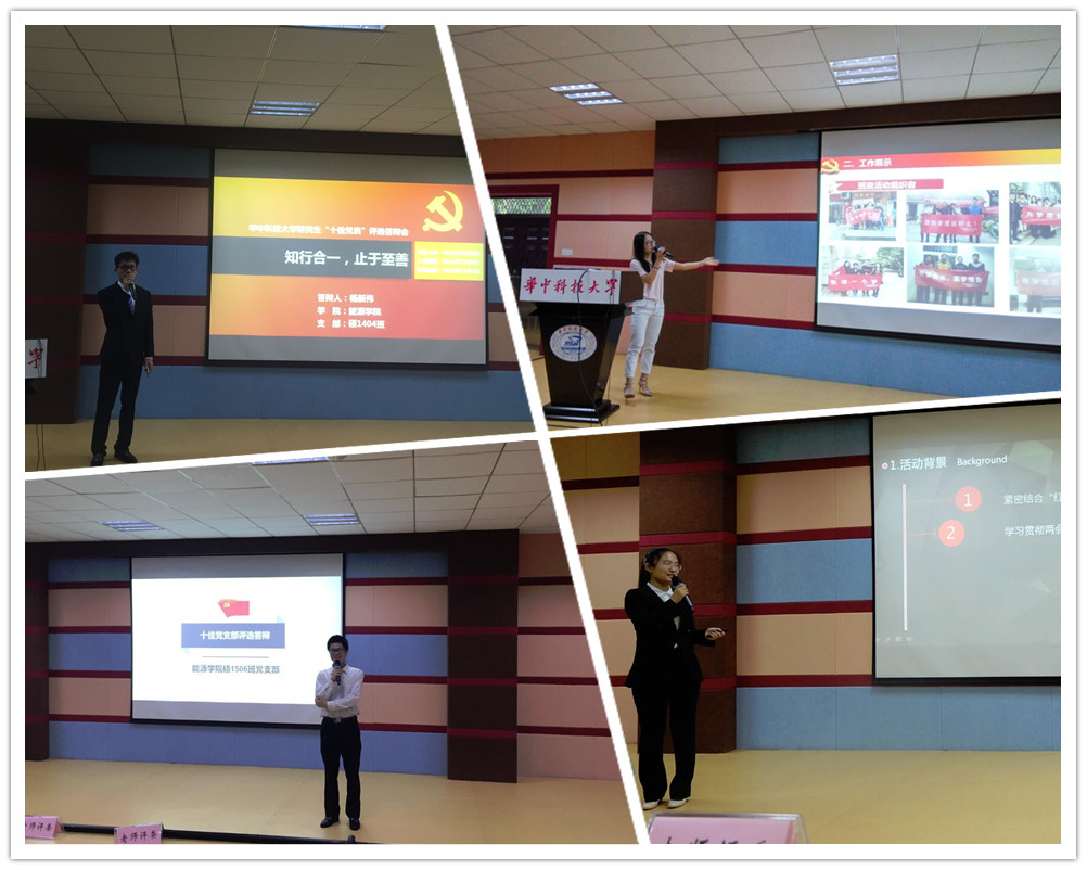 2016年5月28、29日,华中科技大学第三届研究生“红色楷模”系列十佳党支部终评答辩在研究生活动中心顺利举行。能源学院优秀党员代表参加了此次“红色楷模”系列评选活动。