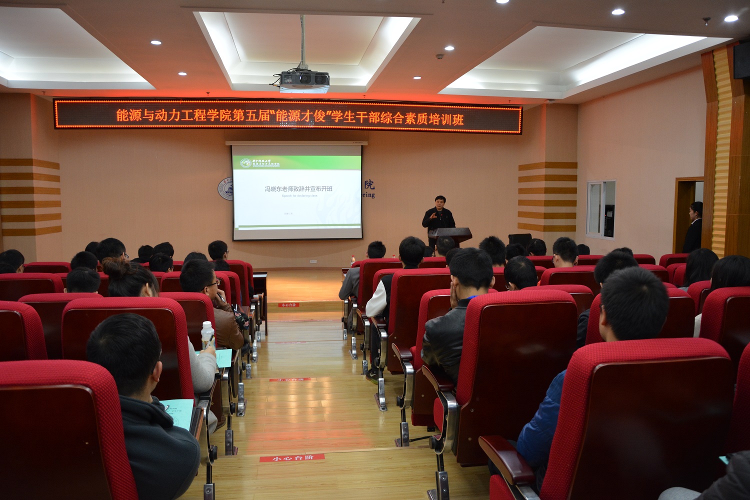 华中科技大学能源学院秉承“明德厚学、求是创新”的校训精神,以培养“四个一等”即砺一等品行、求一等学问、做一等人才、成一等事业为教育宗旨,为了提高学生干部的理论知识水平和工作服务能力,使学生干部树立起强烈的团队协作意识、端正的工作态度,加深对组织的归属感,全面提升学生干部队伍的综合素质,从而推动yl23411永利集团学生工作的顺利开展,由能源学院研究生会主办、能源学院本科团学联和能源学院党建中心协办,特开展第五届“能源才俊”学生干部综合素质培训班。