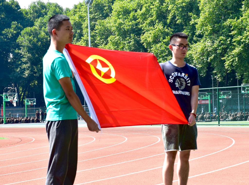 集体佩戴团徽,面向团旗肃立,集体合唱团歌。在嘹亮的歌声中,299名新生共同感受团组织的庄严仪式。