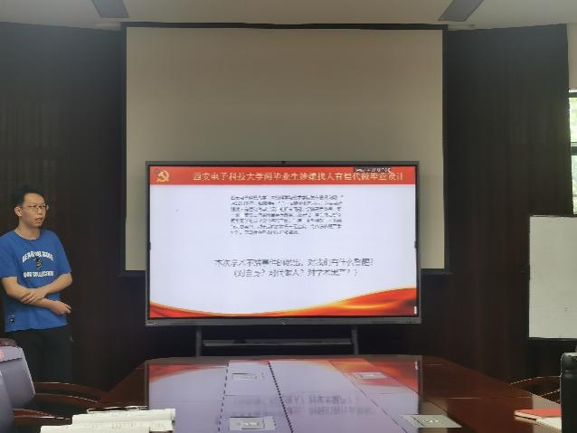 随后,同志们就某高校毕业生找人代做毕设、年轻人不愿意去工厂上班等社会热点事件展开了广泛讨论,大家一致认为,我们应当诚信、严谨地对待学术与工作,不去做败坏品行的事;此外,我们致力于扎根国家新时代发展所需的行业,应当培养自身的过硬本领,闯出自己的一片天,不负韶华。