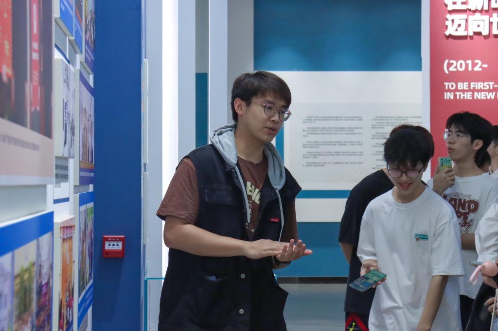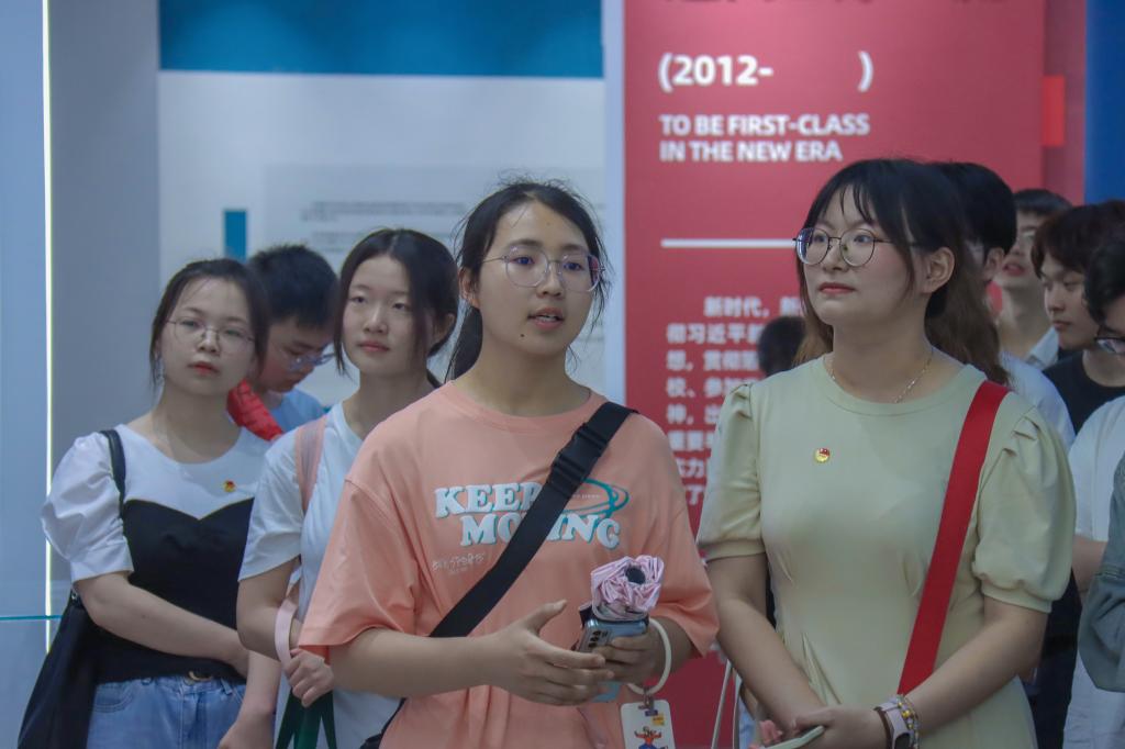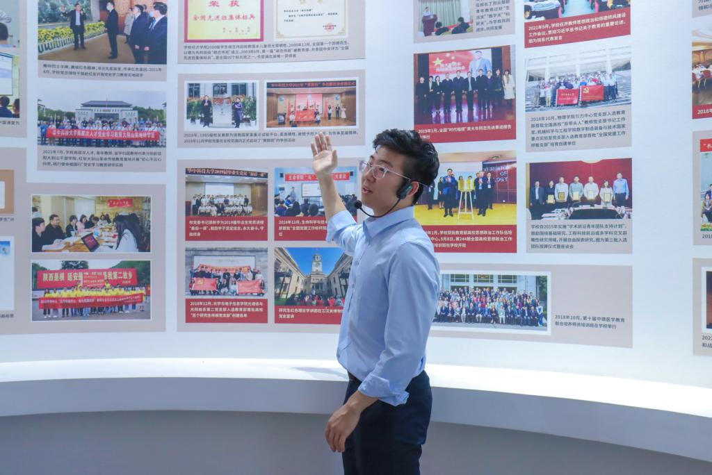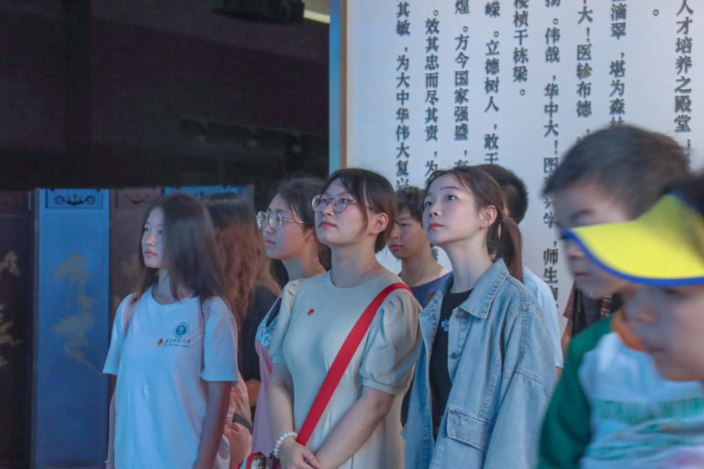 进入校史馆现代厅后,韩嘉浩解说员向同学们介绍了华中科技大学的三张名片,并着重介绍了获得多项国家级教学成果奖、医学届校友吴孟超院士。两院师生就“科学家精神对当代大学生的教育引导价值”这一主题展开讨论。