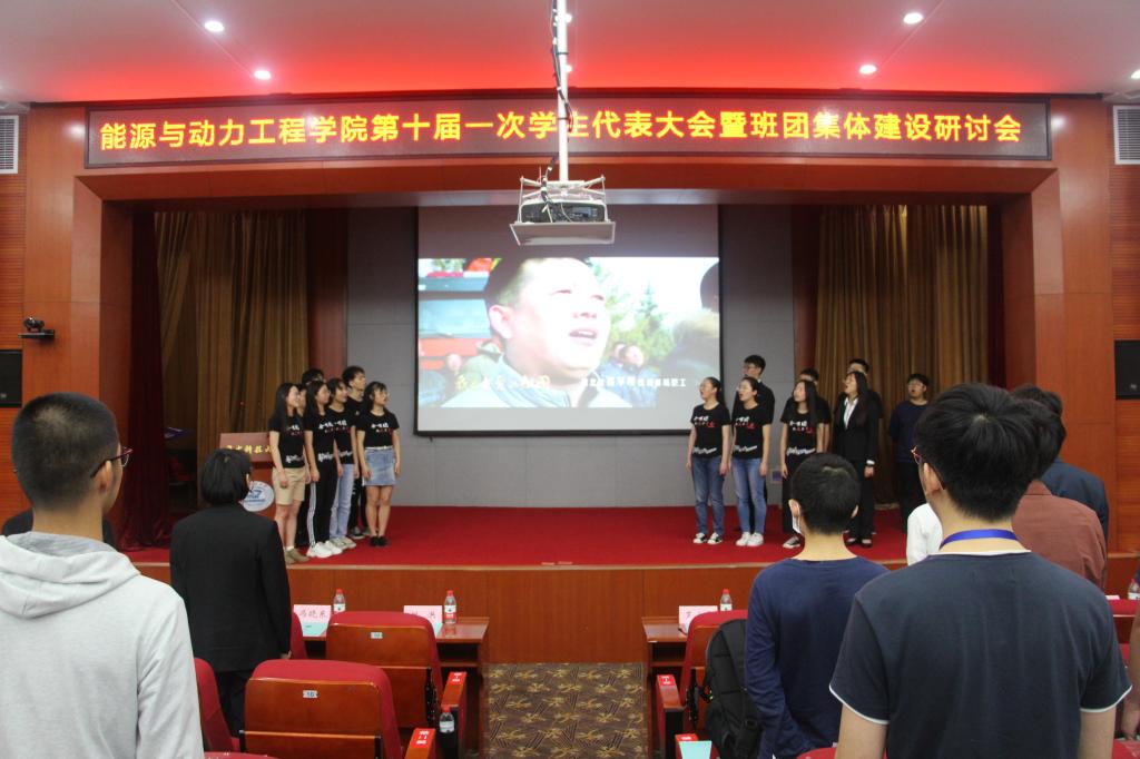 大会正式开始前,在能源合唱团的带领下,在场的全体学生代表合唱了《我和我的祖国》。