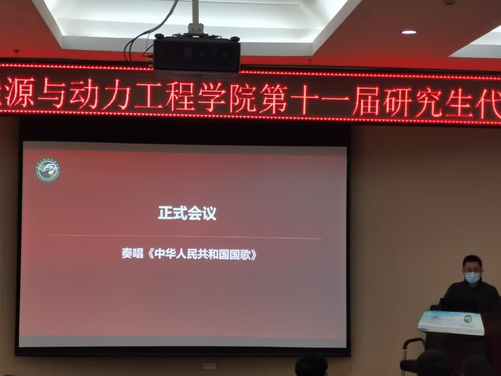 大会在嘹亮的国歌声中正式拉开帷幕。本次大会应出席研究生正式代表83人,因事、因病请假9人,实到74人,超过应到代表的2/3;中共党员(含预备党员)37人,占比44.6%;少数民族代表4人,占比4.8%;非院研究生会主要学生干部66人,占比79.5%,具有广泛的代表性和群众性,符合会议召开条件。