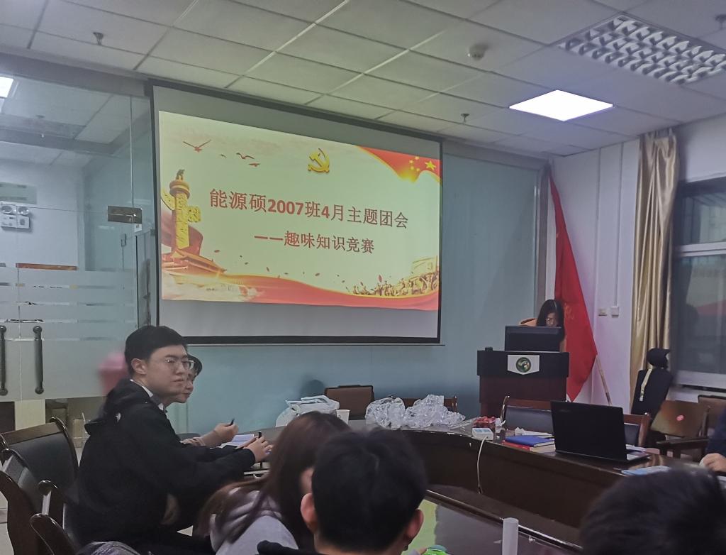 为深入学习习近平总书记在党史学习教育动员大会上的讲话精神,传承红色基因,弘扬伟大精神,迎接建党一百周年华诞,4月8日晚上7点,能源学院硕2007班团支部在动力楼202玻璃房召开了“学党史,强信念,跟党走”的四月主题团日活动。本次活动主要由党史知识问答,听音乐猜红歌,伟大工程你画我猜三个环节组成。