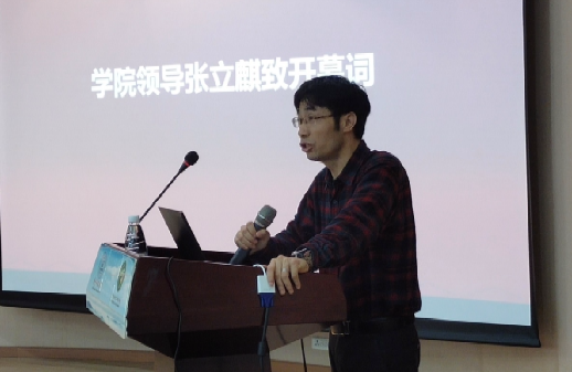 副院长张立麒老师上台致开幕词,他希望老师同学们在科研道路上不忘初心、秉持学术诚信、切勿好高骛远,最后他祝愿能源师生们在未来能取得更多科研成果,争创辉煌。