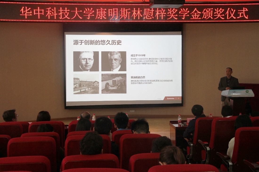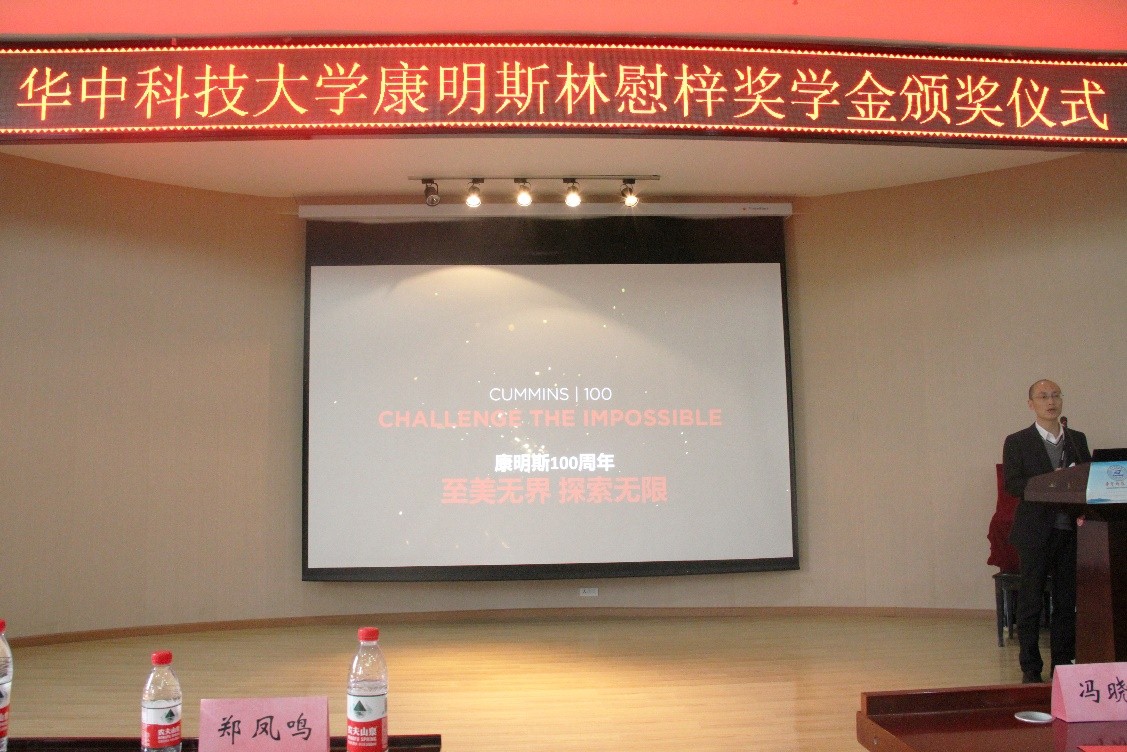 2019年3月21日下午,华中科技大学康明斯林慰梓奖学金颁奖仪式在yl23411永利集团报告厅举行,参加此次仪式的嘉宾有:康明斯电子与燃油系统(武汉)有限公司质量和服务总监郑凤鸣先生,康明斯电子与燃油系统(武汉)有限公司工厂厂长过荆雷先生,华中科技大学机械科学与工程学院党委副书记何杰老师,yl23411永利集团党委副书记冯晓东老师,以及康明斯公司的工作人员,机械学院和能源学院获奖学生等。