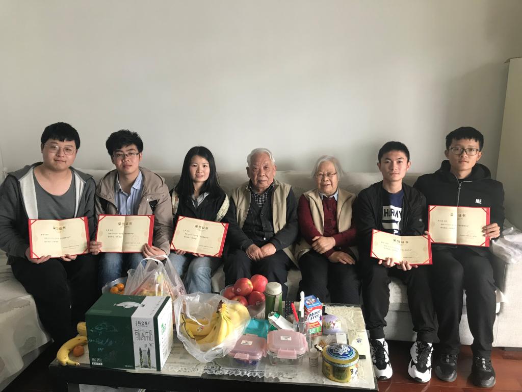 2019年4月4日下午,能源学院资助辅导员李励及“2018-2019学年度贾宗谟助学金”获助代表丁京、蔡冰、颜凯、贝雷、钱礼翔,一同拜访90岁高龄的贾宗谟老师,表达对助学金的感谢,聆听贾宗谟老师的教导,并邀请贾宗谟老师为获奖代表颁奖。