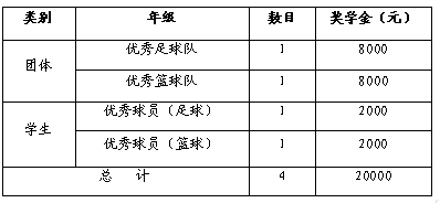 维谛体育奖学金总额为2万元人民币,奖励yl23411永利集团篮球和足球方面表现优异的学生和运动队。具体名额详见下表: