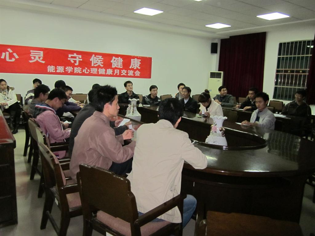 2010年12月3日,能源学院研究生会健康部以交流会的形式,在动力楼二楼会议室,举办了以“导航心灵,守候健康”为主题的心理健康交流会。