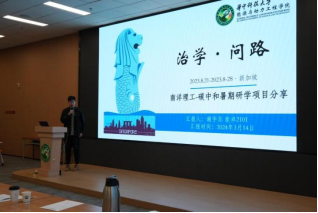 学员分享环节,首先由2023年暑期赴新加坡参加南洋理工大学碳中和暑期研学项目的学员顾荃和谢宇乐分别作主题为“机会与可能”、“治学问路”的分享。顾荃的演讲让同学们了解到出国交流机会满满,感受到新加坡的地域风情和民俗文化。在谢宇乐同学的引导下,大家也对出国交流的意义有了更深入的思考。