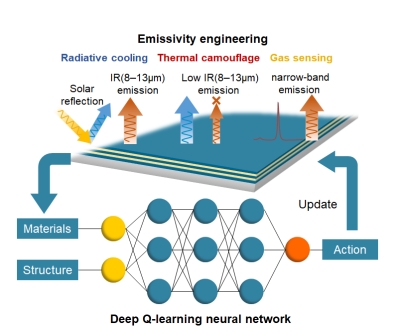 发射率工程旨在设计波长选择性热辐射器(超材料)以获得所需的目标发射率光谱,在热伪装、辐射制冷、气体探测等领域有着广泛的应用。材料的选择和结构的设计是定制波长选择性热辐射器的关键,如何高效地实现热辐射器的逆向设计并在跨不同应用背景下形成通用的设计框架对于推动发射率工程的发展和应用十分重要。
