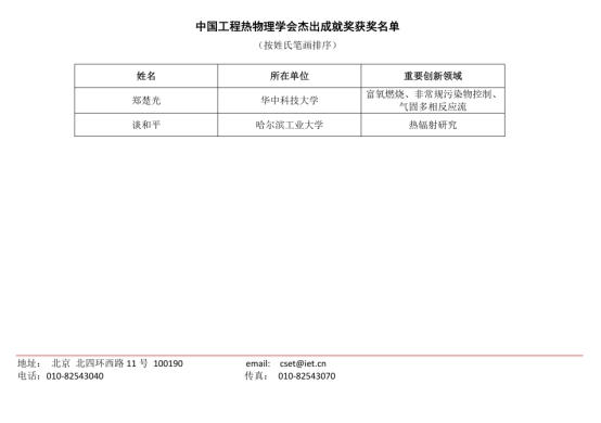 中国工程热物理学会成立于1978年,由从事工程热物理学科的科技工作者和有关单位自愿结成的全国性、学术性、非营利性社会组织,是中国科学技术协会的组成部分。学会设立的科学技术奖贯彻“尊重劳动、尊重知识、尊重人才、尊重创造”的方针,鼓励自主创新和攀登科学技术高峰,促进能源、动力领域科学研究、技术创新与经济和社会发展密切结合,在国内工程热物理学科领域的影响广泛。