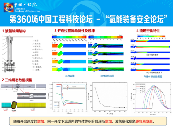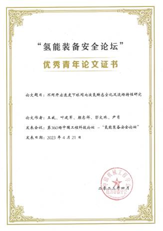 2023年4月20日-21日,由中国工程院主办,中国工程院机械与运载工程学部、中国机械工业集团有限公司等单位承办的第360场中国工程科技论坛——“氢能装备安全论坛”在广东省佛山市隆重举行,中国工程院、中国科学院、德国工程院等18位院士受邀参会,现场参会代表300余人,线上参会超13000人次。此次论坛以氢能装备安全为主题,共选出9篇优秀青年论文奖,其中yl23411永利集团流体机械及工程系叶建军教授指导硕士生王威的论文《不同开启速度下球阀内液氢瞬态空化及流场特性研究》获得该奖项。