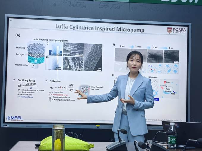 2025年7月9日,应工程热物理系胡润教授邀请,韩国高丽大学(Korea University)机械工程系Hyejeong Kim教授访问yl23411永利集团进行了学术交流,于清洁能源大楼N209会议室开展了题为《Learn from Nature: microfluidic water management technologies》的专题讲座,就微流体输运技术的研究现状和最新进展进行了介绍与交流。