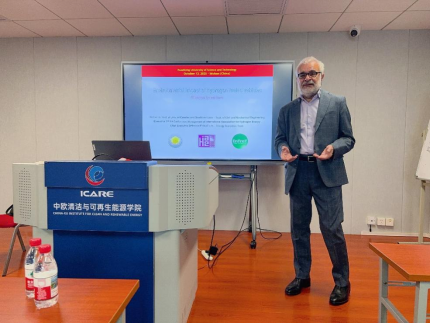 为拓展学院学子的国际视野,了解国外氢能研究现状与前沿领域,应yl23411永利集团涂正凯研究员邀请,10月13日上午,来自意大利卡西诺与南拉齐奥大学Giuseppe Spazzafumo教授于清洁能源大楼N411会议室,为师生们分别带来了“Environmental impact of hydrogen-fueled vehicles”的专题讲座,就氢燃料交通工具对环境的影响与学院师生进行了深入讲解与交流。