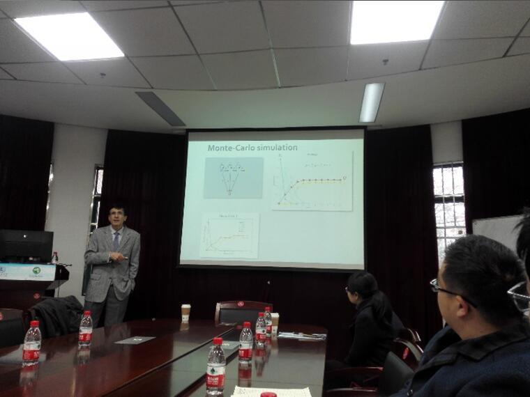 1月2日,Pierre Désesquelles教授进一步介绍了马尔科夫过程中如何预测将来数据的内容。马尔科夫理论与方法采用数学分析方法研究自然过程,已被广泛用于自然科学、工程技术、公用事业等领域的大数据分析。马尔科夫链只需最近或现在的动态资料便可预测将来的发展状态。Pierre Désesquelles教授以飞机场中的实例为我们详细介绍了马尔科夫预测的应用,让同学们能更为清楚的理解马尔科夫理论与方法。此外还介绍了概率风险评估并结合贴近生活的实例,让我们更容易理解。