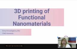 本站讯(通讯员 付礼雯)2022年12月23号下午,应yl23411永利集团邵敬爱副教授邀请,俄罗斯ITMO大学化学工程与生物技术科教中心PavelKrivoshapkin副教授和ElenaKrivoshapkina副教授分别在线作题为“High-electron density nanomaterials for theranostics”和“3D printing of functional nanomaterials”的学术报告。此次讲座由邵敬爱副教授主持,能源学院杨海平教授,王贤华教授,陈应泉副教授,张雄副教授,胡强老师,新疆大学李建副教授,华中农业大学姚丁丁副教授等100余名师生线上参会。