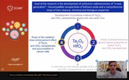 讲座中,Pavel Krivoshapkin副教授首先介绍了非传染性疾病的威胁以及靶向癌症治疗的挑战,并且提出了开发“一种新的基因”的抗肿瘤放射增敏剂-氧化铪和氧化钽的生物相容性纳米颗粒,进一步展示该新型材料的物理、化学和生物特性,最后分析了该材料在能源化学、医药等领域的广阔应用前景与重要意义。