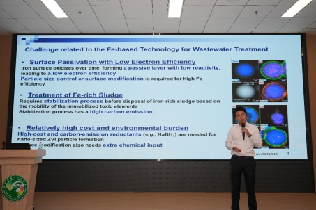接着Dan Tsang教授在题为“矿物-生物炭设计减轻工业废水处理的环境负担”的讲座中,介绍了一种高效的生物炭材料,用于可持续净化废水。基于铁基技术,他将铁和锰颗粒与生物炭结合,设计了一种高效的材料,可以防止零价铁快速钝化,并促进电子通过石墨生物炭层转移。该方法具有更高的污染物吸收能力、更高的稳定性和更低的碳排放。通过这种新型的矿物-碳复合材料设计,可以实现更可持续的废水处理路径。