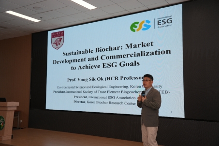 首先,Yong SikOK教授以“可持续生物炭:实现ESG目标的市场开发和商业化”开场,详细介绍了生物炭的研究现状。他介绍了生物炭研究的趋势,指出了原料性质的重要性,并强调了生物炭在不同行业整合潜力方面的关键突破以及全球生物炭市场中相关的新兴商机。在此基础上,他介绍了生物炭的几种应用方法、现有的发展障碍以及相应的解决方案。