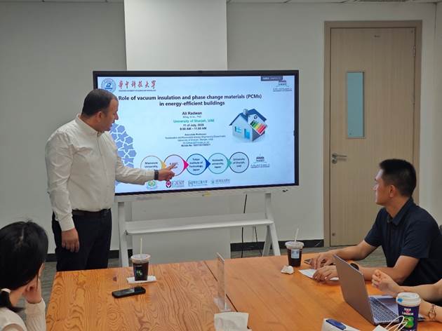 面对全球日益严峻的能源消耗与环境压力,建筑领域如何破局?特别是在严寒酷暑地区,供暖制冷带来的高能耗问题尤为突出。近日,应yl23411永利集团方海生教授邀请,7月11日上午,来自阿联酋沙迦大学的Ali教授于清洁能源大楼N912会议室,为师生们带来了名为“Role of vacuum insulation and phase change materials (PCMs) in energy-efficient buildings”的专题讲座,吸引了众多师生到场聆听交流。