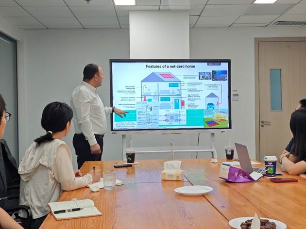 Ali教授首先分享了他在日本寒冷地区参与设计建造的一个净零能耗建筑成功案例。他详细介绍了该项目的设计理念、关键技术应用(如高性能围护结构、可再生能源整合等)以及实际运行效果。然而,他特别强调,将寒地经验直接移植到炎热地区会面临巨大挑战,例如湿热环境调控、光伏效率受高温影响等,需要因地制宜的解决方案。